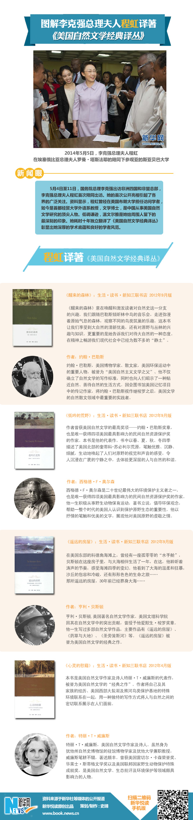 5月4日至11日,国务院总理李克强出访埃塞俄比亚、尼日利亚、安哥拉、肯尼亚非洲四国,首次陪同出访的总理夫人程虹,随着新华社国际部官方微博发布的照片,走进了公众视野。当地时间5月6日,在同埃塞俄比亚总统穆拉图夫妇会见后,程虹将自己的著作和译著赠送给穆拉图总统夫妇。 程虹的另一个身份是首都经贸大学外语系教授,亦是国内研究自然文学的最重要学者之一。网友盛赞总理夫人光环之下的程虹,优雅、沉静,甚具学者风范,正如她对英美自然文学研究论著的书名——“宁静无价”。 1.十余年来“寻归荒野” 自然文学在美国是大学课程,也是研究的热门,20世界80年代起,美国大学普遍开设了一门“自然文学”课程,自然文学作为一支文学流派,开始被承认和接受。这个新的领域,汇集了从18世纪以来对自然情有独钟的作家和作品,很多都是我们今天耳熟能详的:梭罗的《瓦尔登湖》,缪尔的《夏日走过山间》,利奥波德的《沙乡年鉴》…… 自然文学的作品有一个形式上的特点,即以第一人称,用散文、书信、日记等形式,描述对自然的真实体验。那些自然文学的作家们,不仅在作品里和生活中身体力行对自然的尊重,甚至还常常为此改变生存方式,《遥远的房屋》作者贝斯顿在大海边筑了一个“水手舱”,一个人在此生活了一年;《低吟的荒野》作者奥尔森因为迷恋奎蒂科-苏必利尔荒原,把家安在了那里并终生居住于此;更不用说梭罗在瓦尔登湖畔的独守。 但在国内,这是一个比较偏门的研究领域,现任三联书店文化出版分社社长、曾任《读书》杂志副主编的李学军说,程虹女士是第一个系统介绍美国自然文学的学者,十余年来一直坚持在自己的专业领域往前推进。 1999年,程虹第一次来到三联书店出版社,从那时起,李学军和程虹开始了合作。“她是拿着书稿(即后来的学术专著《寻归荒野》)来到了《读书》杂志编辑部。当时在学界,三联书店的地位非常高,在三联出书很难。而且有名的作者也很多。所以,当时对程虹女士的书稿,也没有特别对待,这本书直到2001年才出版。”当时,自然文学在国内尚处于“冷门”,《寻归荒野》是国内第一本关于美国自然文学研究的专著。 2.让心灵归属群山大地 《寻归荒野》之后,程虹继而在上海的《文景》上主持了旨在介绍英美自然文学名家名作的专栏《重读自然》。2009年,在此基础上出版了《宁静无价:英美自然文学散论》(上海人民出版社)——爱默生眼中的自然、哈德逊河风景画派与自然文学、梭罗的精神遗产、苏珊·f·库珀与她的《乡村时光》、理查德·杰弗里斯笔下的英格兰乡村、哈代《林中居民》中的生态意识……均在书中一一呈现。 程虹还把大部分精力转向译介美国自然文学经典作品,以两三年磨一本的慢工,翻译了《醒来的森林》(2004)、《遥远的房屋》(2007)、《心灵的慰藉》(2010)、《低吟的荒野》(2012)。2012年,三联书店出版社把这四本书辑成“美国自然文学经典译丛”出版。 对于自然文学研究的心路历程,程虹曾回忆说:自从我于1995年涉足自然文学领域之后,所倾心研读与研究的几乎都与荒野有关。“荒野”是自然文学中的一个关键词,对荒野的理解堪称是美国自然文学的精华。同时,荒野也一直是美国自然文学所关注的焦点。在《寻归荒野》出版近十年时,我对自己当初所选用的书名有了更深的理解。“寻归”并不是一般意义上的走向自然,更不是回到原始自然的状态,而是去寻求自然的造化,让心灵归属于一种像群山、大地、沙漠那般沉静而拥有定力的状态。在浮躁不安的现代社会中,或许,我们能够从自然界中找回这种定力。 3.做文字工作要慢功夫 2013年,程虹又出版了一本关于美国自然文学的教材《美国自然文学三十讲》。该书以中文为主写作,附有大量的英文参考资料,既基于美国自然文学的发展状况,又从中国学生可以理解的角度,对自然文学发展脉络进行梳理,并对其经典作家和代表性作品进行评述和相应的理论解释。去年11月,程虹还在《读书》杂志上发表文章《承载着人类精神的土地》,介绍美国自然文学作家亨利·贝斯顿和他的作品《芳草与大地》。 《美国自然文学三十讲》的责编、外研社的易璐用“低调”来形容程虹。“她对于书里面的专有名词的翻译很严谨,从中可以感受到她对学术的热爱,对人和自然和谐关系的热爱。”追寻自然文学多年,无论是著述,还是译著,程虹坚持着“文字工作要慢功夫”、“做学问要精”。在程虹的理念中,高校教师应当重新拾起属于文人那份对学术的崇敬及对治学的执著。 程虹在《寻归荒野》增订版序中的一段话,似乎表达了她治学的初衷:为了那些寂寞求真的同仁,为了在心灵的枝头栖着希望之鸟的人们。让我们从心灵上回归已故美国自然文学作家西格德·奥尔森笔下那片“低吟的荒野”:湖畔潜鸟的呼唤,夜幕中的北极光,以及夜空下那广袤沉静的大地。因为与这低吟的荒野密不可分的“是由失而复得的原古生活方式中寻到的简朴的愉悦,时光的永恒及对远景的期望。” ———————— 新闻链接: 图解李克强总理夫人程虹译著《美国自然文学经典译丛》 |