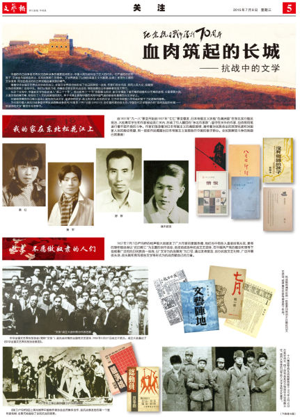 中国的抗日战争是世界反法西斯战争的重要组成部分,中国人民为此付出了巨大的代价。在严峻的历史形势下,文学担负起唤起民众、实现民族救亡的使命。文学界掀起了以颂扬英雄主义为基调、以救亡图存为主题的文学浪潮,向浴血奋战的抗日军民输送着民族的精气。 随着中华全国文艺界抗敌协会的成立,全国文学界自觉地形成了抗日民族统一战线,作家们走出书房,走向人民大众,投身到火热的民族救亡运动中去。他们以笔做刀枪,热情地讴歌全民抗战运动,愤怒地鞭挞日本侵略者的滔天罪行。 在这个过程中,中国新文学也由此进入“第三个十年”。经过前两个“十年”的酝酿与积淀,新文学摆脱了童年期的幼稚和少年期的迷惘,在最需要大风大浪历练的青年期,经受住了八年抗战硝烟的洗礼,终于将真正具有中国作风和中国气派的崭新形象展现在文学史上。 在硝烟弥漫的抗日烽火战场上诞生的抗战文学,是进步的文学、战斗的文学、反抗的文学,它为中华民族八年抗战史留下了史诗般的画卷。 为纪念中国人民抗日战争暨世界反法西斯战争胜利70周年,7月7日至12月31日,由中国作家协会主办、中国现代文学馆承办的“血肉筑起的长城——抗战中的文学”展览在北京举行。 我的家在东北松花江上 自1931年“九一八”事变开始到1937年“七七”事变爆发,日本帝国主义扶植“伪满洲国”在东北实行殖民统治,大批青年学生和作家被迫流亡关内,形成了引人瞩目的“东北作家群”;留守在关外的作家,也依然用笔进行着不屈不挠的斗争。作家们饱含着对日本帝国主义的满腔激愤,满怀着对民族命运的深深忧虑和对国家人民的殷切希望,用一部部作品揭露出日本帝国主义妄图吞并中国的狼子野心。全民族解放斗争的序曲已然奏响! 起来不愿做奴隶的人们 1937年7月7日卢沟桥的枪声极大地激发了广大作家的爱国热情,他们当中有些人直接投笔从戎,更多的是积极投身以“抗日救亡”为主题的创作活动,自发结成各种抗战文艺团体,在中国共产党的倡议和领导下组成最广泛的抗日民族统一战线,以“文学为抗战服务”为口号,通过发表宣言,创办抗敌文艺刊物,广泛开展街头诗、街头剧和竞写报告文学等形式为抗战贡献自己的力量。 ![]() |
