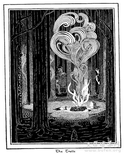 作者托尔金的手绘插图《The Trolls》 电影中文字幕将采自中文版小说 就在彼得·杰克逊导演的奇幻大片《霍比特人》今天上映之际,全球畅销75年的电影同名原著小说全新中文版也在今天由世纪文景出版,并在书中收入了作者J.R.R.托尔金的手绘插图。