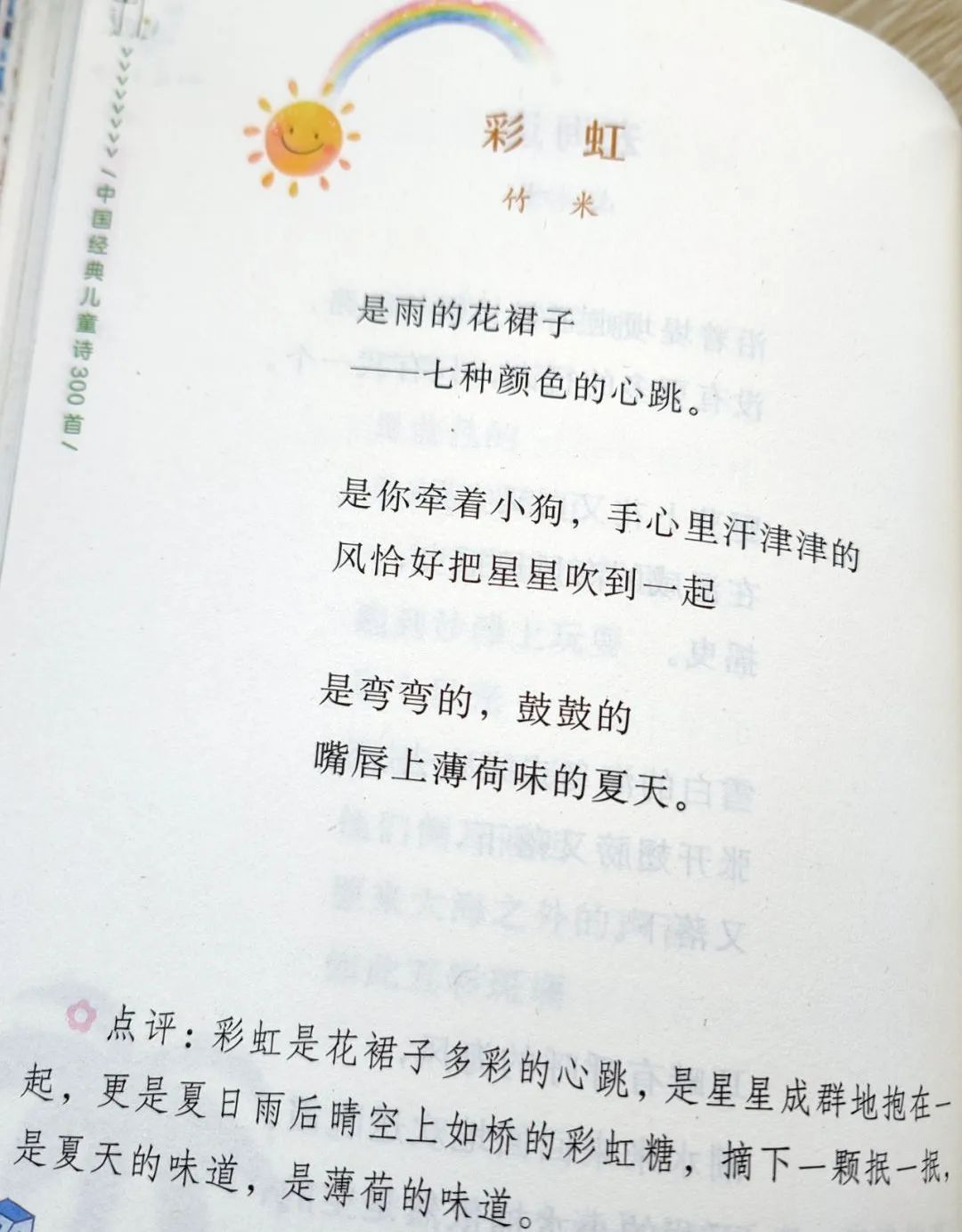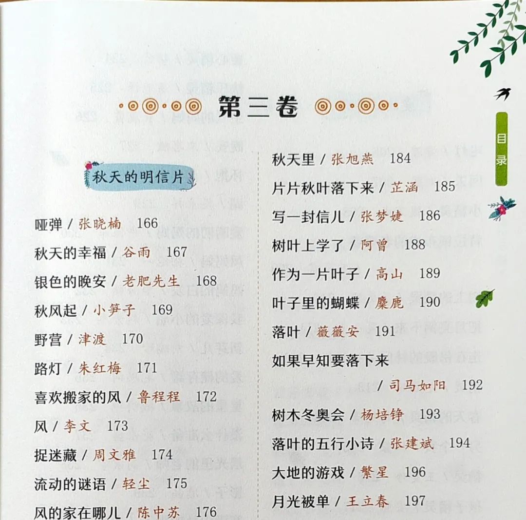 近日,由南海出版公司出版发行的童诗重量选本《中国经典儿童诗300首》出版,该书由钱万成、谭旭东、山叶三代诗人合作选编。入选的童诗作品,均为当代活跃诗人近年的原创力作。这也意味着传统诗观与现代审美有序衔接,也在一定程度上避免年代的跨层和纰漏。 本书是在“新童诗”作者群创作的作品基础上,结合当代儿童诗的整个状况,进行细致梳理、精心选编而成。入选诗人包括金波、圣野、王宜振、王立春、张晓楠、慈琪、宋晓杰、李德民、丁云、兰梦醒、刘脏、津渡等大家熟知的名家和新锐作者,基本可反映当代儿童诗的创作水平。 【诗集亮点】 四季×大主题 诗集按照四季这条主线,搭配一系列精彩的童诗主题,阅读它,将带给孩子们一个个精彩纷呈的世界…… 新童诗·新风貌 就像钱万成老师在序言《新童诗·新风貌·新期待》中所说,“他们远离巢厩,大胆尝试,改革创新,以新奇的手法,超常的想象,对儿童生活,大千世界,对童心、童真、童趣做了别样的诠释和展现,令人耳目一新。” 诗作+点评 每一首精彩诗作的后面,都附有一小段简短点评,给自主阅读提供一些指导建议,可谓是画龙点睛~↓↓↓ 03 诗集目录 ◎ 第一卷 ◎ ·〔软软的春天〕 春风儿不说话 / 谭旭东 002 在春天 / 吉葡乐 003 春天是个神奇的魔法师 / 钱万成 004 春天是明亮的/ 苏浅 005 一 朵花就是 一个春天 / 丁云 006 树叶地图 / 盘晓昱 007 春天里的事 / 金敏 008 软软的春天 / 鸟鸣涧 009 立春啦!立春啦!/ 海嫫 010 蚁 / 张二棍 011 三月的徽章 / 屠文颖 012 谁该说声抱歉 / 雨兰 013 梦里的春游/应拥军 014 你收到春姑娘的信了吗 / 于国平 015 小春天 / 张晓东 016 捉迷藏 / 李进 017 春天的天空 / 伊梅 018 变 身 / 李小菁 019 春天很小 / 黄文军 020 我把春天戴在头上 / 陈琪敬 021 春天醒了/ 梁玉 022 春天的锦鸡 / 郑英 023 神奇的音乐教室 / 吴菁华 024 柳和小河 / 付小方 025 小小音乐迷 / 徐冬杰 026 蹑手蹑脚的花仙子 / 顾红干 028 花之梦 / 李静 029 闹 春 / 刘凤 030 春天是个魔术师 / 阿娉 031 春天,我们去看树 / 王长敏 032 草芽芽 / 窦晶 034 咬春天 / 李燕 035 百变新芽 / 魏益永 036 树的发型 / 张晓楠 038 树儿与蓝糖水 / 毛思词 039 甩果子大树 / 何晓宁 040 桥 / 刘添宁 041 森林指挥家 /范典 042 桥 / 朱守云 043 ·〔花的旅行〕 我们讨论着 / 花永盛 044 菜园子的计划 / 翟英琴 045 时间谋划着美好 / 高歌 046 小鼹鼠的计划 / 陈艳 047 春天里的计划 / 顾佳琪 048 我的计划 / 严晓萍 049 天空的计划 / 石斛兰 050 最高超的设计师 / 奇奇橙 051 种风筝 / 王立春 052 一只想航海的风筝 / 陈蘑菇 053 风筝巴桑 / 高山 054 风筝瞌睡了 / 沐卉 056 小溪流的歌声 / 凌非 057 远 行 / 王雅梅 058 蓝 天 / 赖松廷 059 小小的溪流 / 丹 060 小 溪 / 方楠 061 滑 板 / 秋婷 062 山孩子 / 姜慧卿 063 大山的味道 / 吴飞祥 064 山 / 林小锋 065 火山和雪山 / 水茸茸 066 山脉是谁的琴键 / 一两阳光067 神枪手 / 袖哀 068 蓝色的竞技场 / 徐冬杰 069 该怎么穿 / 李桂英 070 风中的湖 / 张蕾 071 大大的湖和小小的天 / 张春 072 湖 / 高恩道 073 挠痒痒 / 树先生 074 雨珠的旅行 / 汪梦云 075 风儿的旅行 / 夏秋香 076 旅行的秘密 / 刁江波 077 旅 行 / 崔蕊霞 078 出发喽 / 郭丽娜 079 花两朵 / 夏小五 080 旅 行 / 余平辉 081 甜甜的酒窝儿 / 宋晓杰 082 草芽芽 / 高昌 084 ◎ 第二卷 ◎ ·〔夏日逃跑计划〕 夏 天 / 安武林 086 春天的尾巴 / 兰梦醒 087 葵 花 / 吉葡乐 088 初 夏 / 山叶 089 萤火虫 / 顾育倍 090 夏天是一尾小小的鱼儿 / 谭哲 091 美人蕉 / 贾玉倩 092 一场误会 / 金敏 093 去年的蝉 / 董宏猷 094 立 夏 / 颜梅玖 095 不能落进夏天的池塘 / 汪一一 096 如果你是乖孩子 / 苏美晴 097 水泥电杆 / 王亮庭 098 小小孩是什么做的? / 梨良贝 099 魔法花园 / 未沐 100 童年很小 / 阮文 101 节日礼物 / 陈晓 102 长大一天的儿童节 / 金珊珊 103 如果今天是个什么节日 / 蓝钥匙 104 放假的时候 / 陈蕾 105 有一天大胃王没胃口 / 欧雯 106 西瓜的诗 / 王宜振 107 绿太阳 / 陈曦 108 知了的旧衣服 / 曹安娜 109 夏日里谁最累 / 段冰心 110 雷 / 兰心 111 冰 棒 / 李静 112 藕 / 袖哀 113 夏日逃跑计划 / 鲁程程 114 荷香小鸟 / 周文雅 116 什么都没有说 / 陈蕾 117 棒棒糖 / 阿妙 118 地球的最后一个夜晚 / 王笑梅 119 草莓醒来 / 美西 120 我 们 / 赖松廷 121 修理地球 / 郭丽娜 122 合适的伙伴 / 杨光圣 123 最佳运动员 / 李月林 124 想想他们 / 丁云 125 星球小孩 / 凌代坤 126 ·〔七彩的心跳〕 找妈妈 / 圣野 128 彩 云 / 王亨良 129 云 / 魏强 130 云朵帽子 / 米粒儿 131 云妈妈 / 曹立光 132 雨 人 / 刘脏 133 夏天,我喜欢风,我喜欢雨 / 苏唐果 134 雨 滴 / 方然 135 今天是不下雨的日子 / 米心 136 养 鱼 / 陈敏姣 137 梅 雨 / 潘亚锋 138 提 着 / 九歌 139 小雨点的游戏 / 张晓鹏 140 暴 雨 / 牧心草 141 岛的心事 / 李袁媛 142 郁金香和星星 / 史京 143 星 / 李德民 144 陌 生 / 蓝钥匙 145 夜晚的风铃 / 曹安娜 146 星星文字 / 李俄轩 147 星,请落下来一颗 / 小麦子 148 我的小星星——写给瑞瑞 / 小美 149 星 星 / 谷雨 150 蒲公英 / 比该 151 岛 / 欧雯 152 宝贝疙瘩 / 王亚茹 153 夕 阳 / 陈庆元 154 看 海 / 袁佳红 155 太阳的温柔 / 水木 156 属于我的那片海 / 盘晓昱 157 音 符 / 段冰心 158 去海边 / 山叶 159 彩 虹 / 竹米 160 彩虹罚单 / 王爱玲 161 晴天的信号 / 王雁君 162 彩色发夹 / 陈馨 163