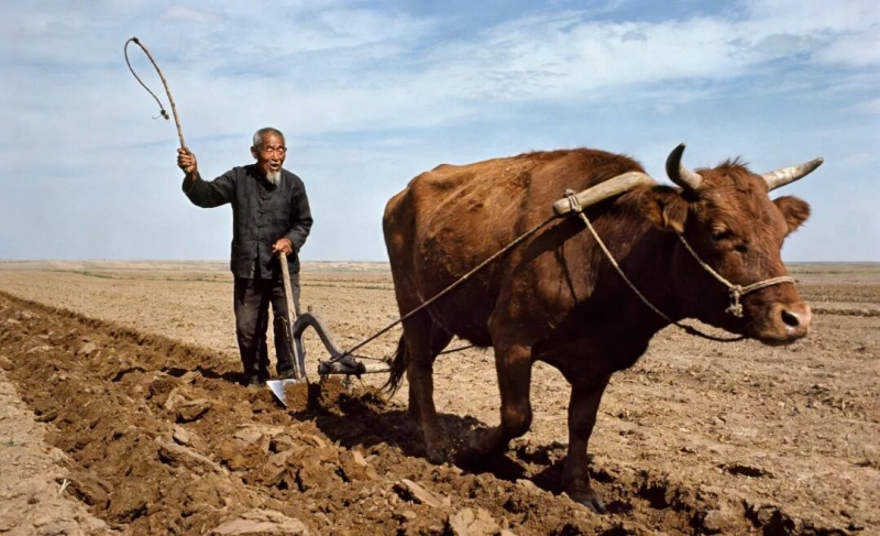 看那边人,这大地的长子,来了。他赤着脚,踩在刚刚苏醒的土上。脚底的茧,能读懂泥土的墒情。他扶着犁,那铁铸的笔尖,闪烁着冷冽而诚实的光。一声吆喝,不是命令,是商量,是恳请。